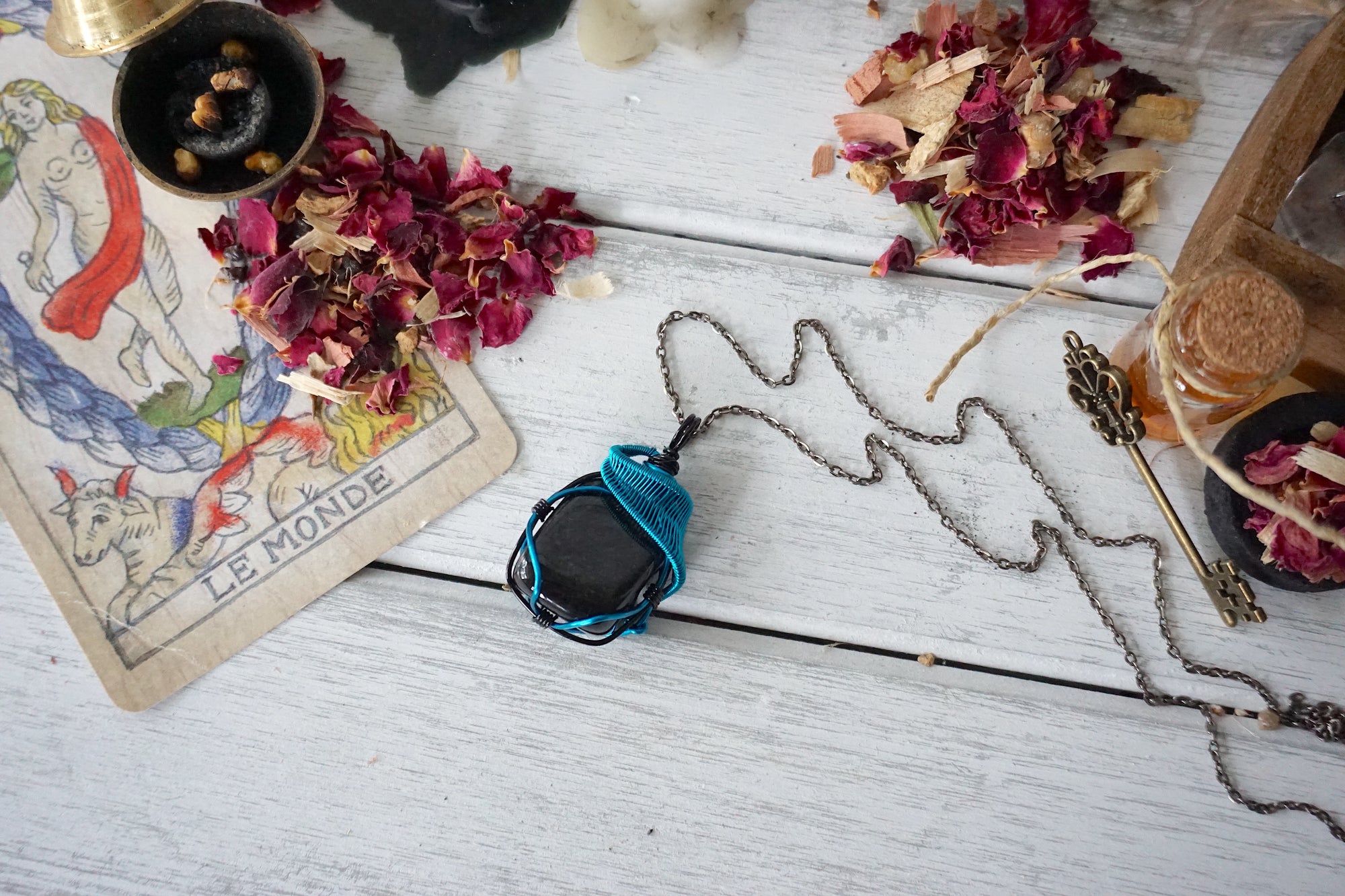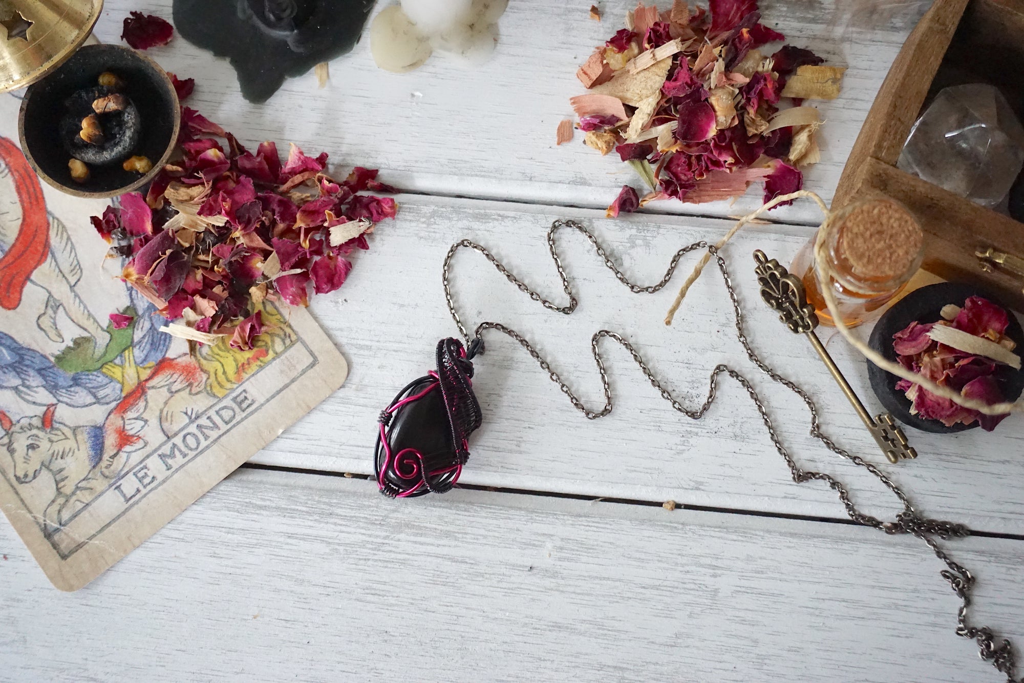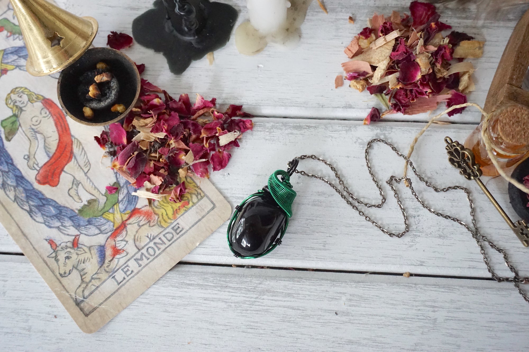 Crystals glow, obsidian shields — timeless gothic jewelry enchantment