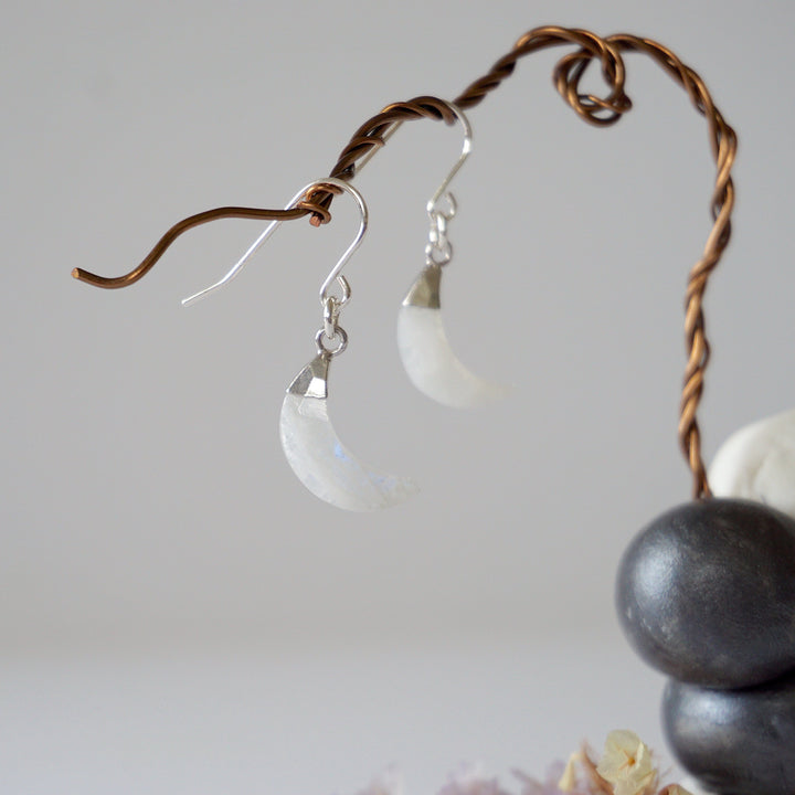Transport to your inner magical self with the energies of these uniquely crafted rainbow moonstone earrings. Our rainbow moonstone moon earrings are known for: