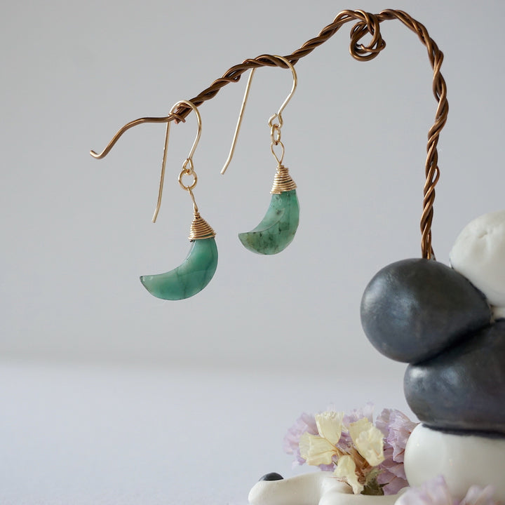 Emerald Earrings - Moon Drop Earrings - 14K Gold Filled