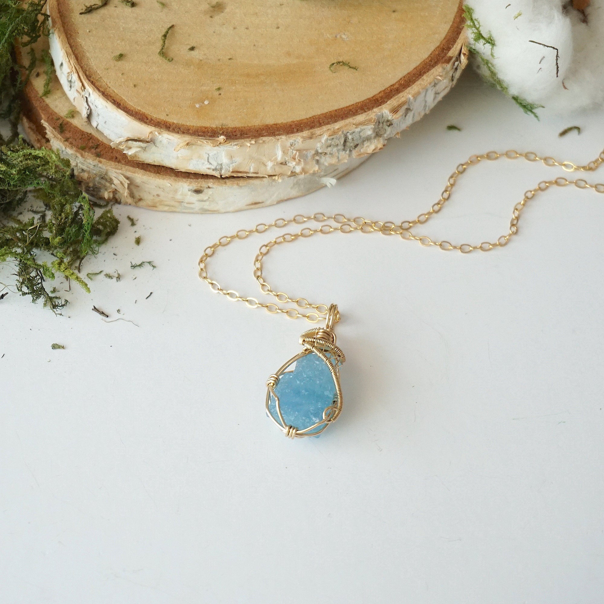 Feel this natural stone's calming vibes take you to your seaside happy place. Handcrafted with love, the raw aquamarine necklace celebrates the life you live. Its elegant design mixes with the raw stone to create a piece as authentic as you.