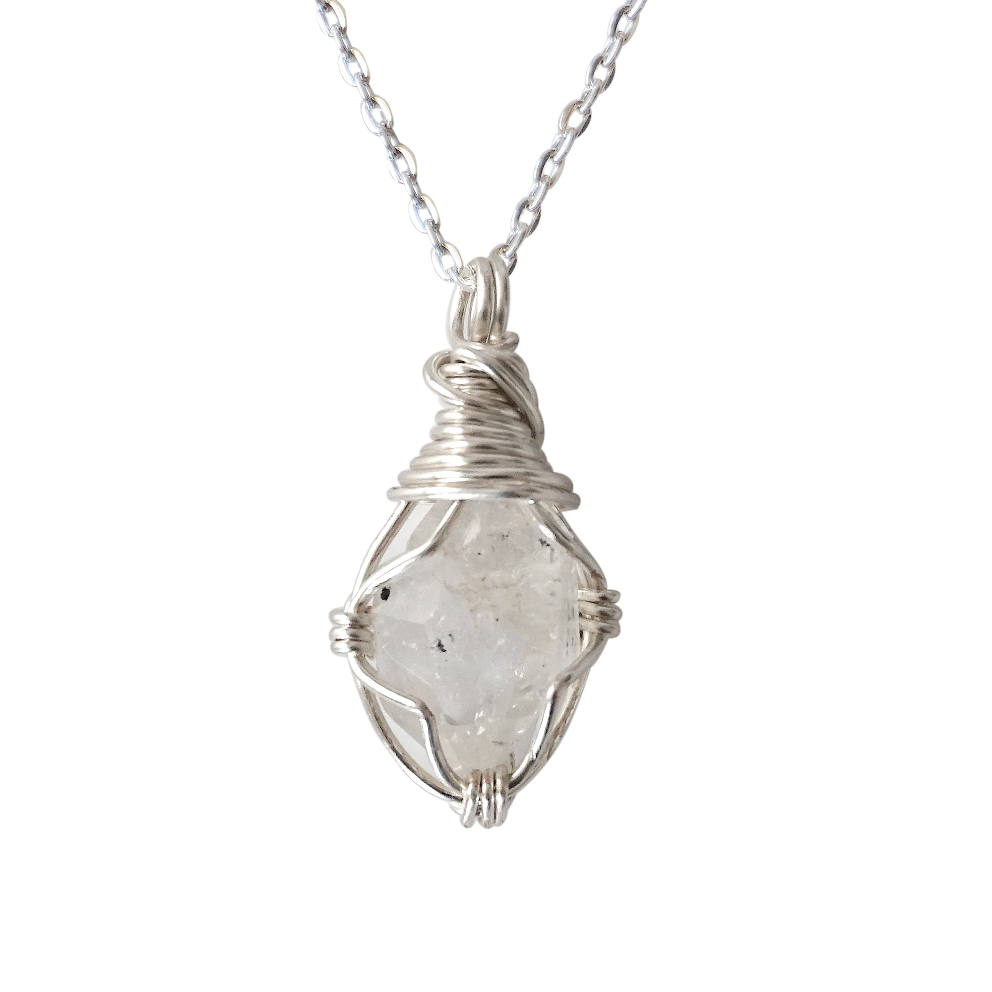 Embrace natural brilliance with our raw Herkimer diamond necklace, handcrafted with clean, simple wire-wrapping in silver-plated copper. This understated design lets the sparkling clarity of raw Herkimer diamond shine, while elegant silver-toned wire creates a secure, modern setting.